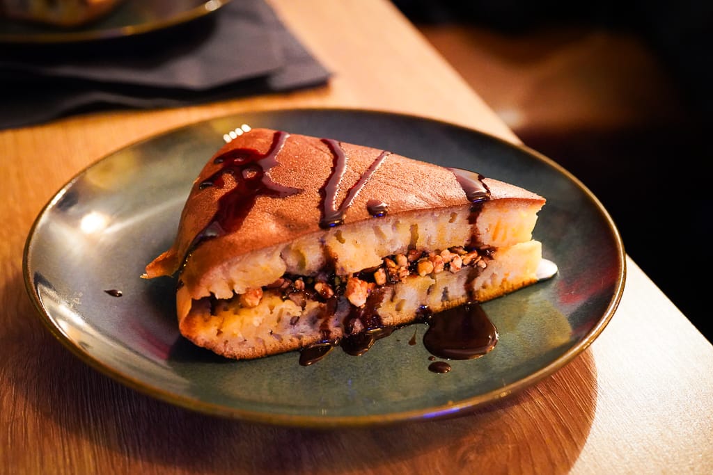 I had my first martabak manis as a small child when my parents took me and my sister to the Pasar Malam (night market) in Jakarta. Not many Indonesian restaurants in the Netherlands serve this dessert, so I was excited to see it on Berempah’s menu. It’s a thick, pancake-like treat filled with condensed milk, chocolate, and crushed peanuts. Comforting and familiar, it was the perfect way to end the meal.