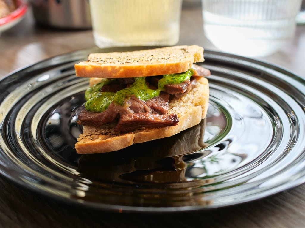 Emiliano Giorgi, known as the Ris8tto Chef, whose Italian food is inspired by his family’s recipes, started off with a beef tongue toasted mini-sandwich, served with a dollop of fresh salsa verde.